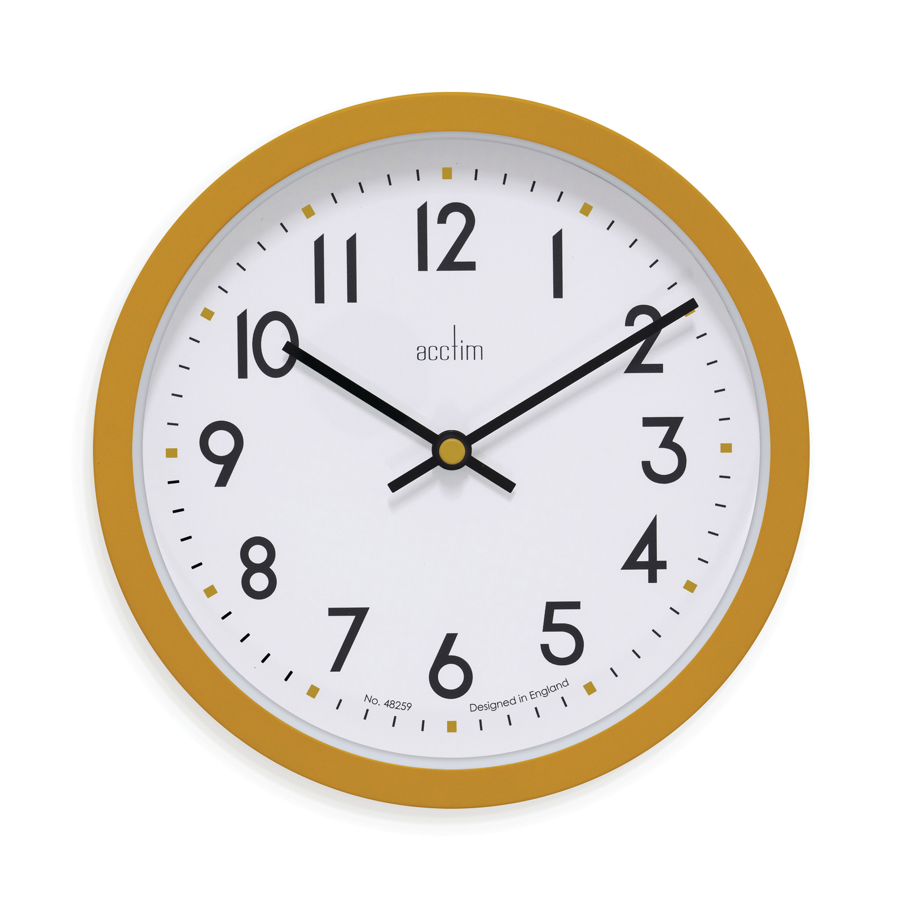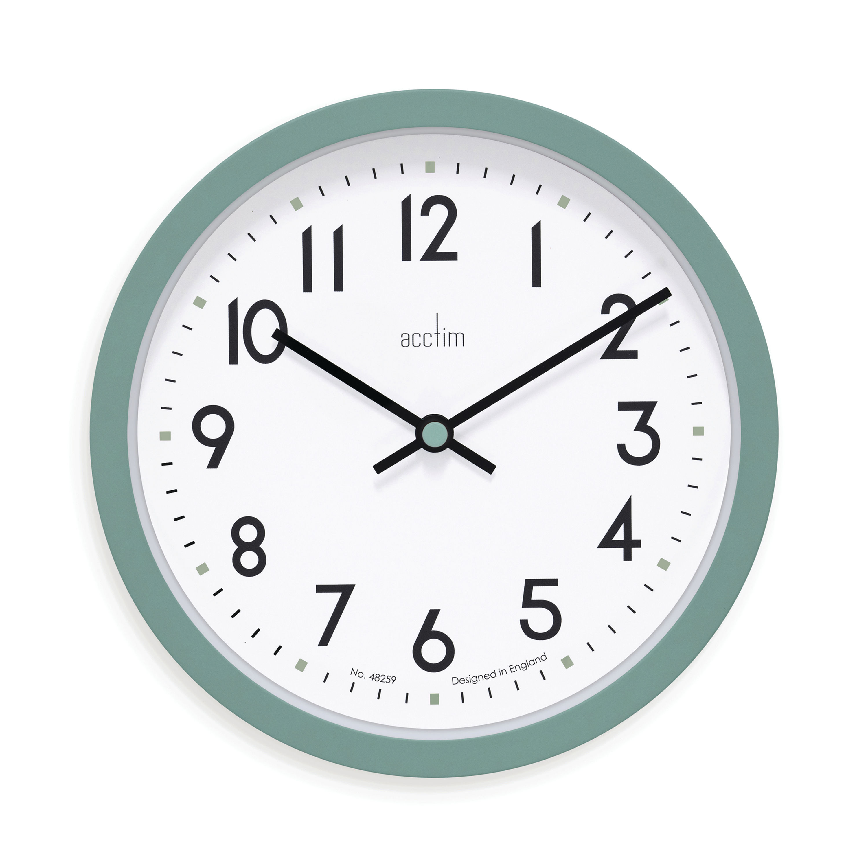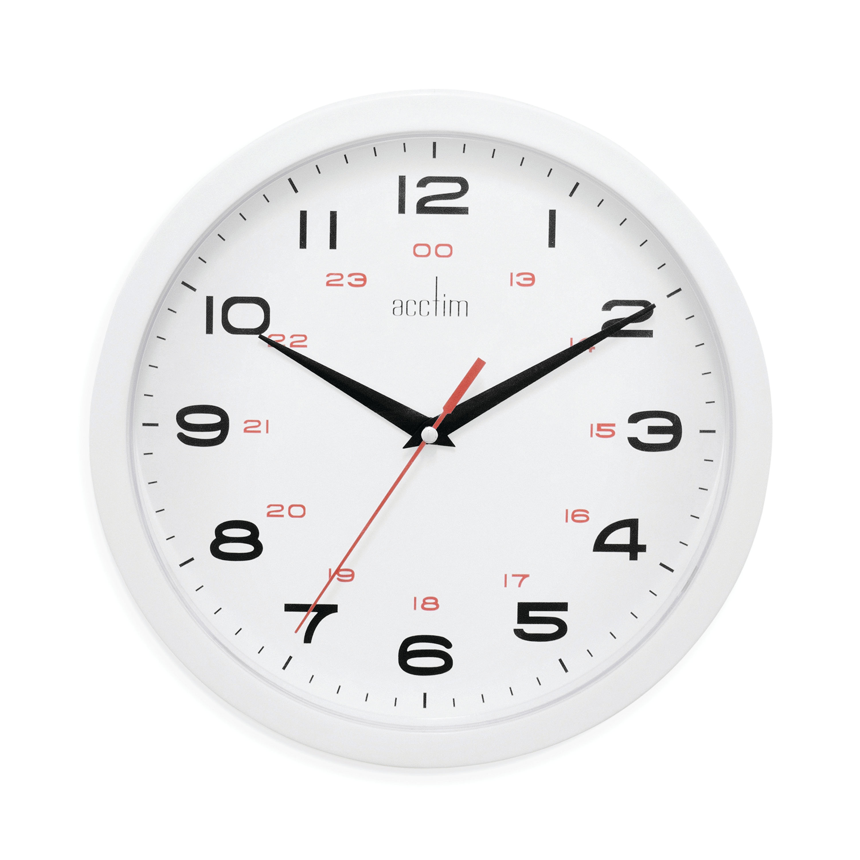 The Acctim Aylesbury Plastic Wall Clock is an economical wall clock with an eye-catching modern design. The bold modern typeface is easily legible against the white dial, as are the thick black hour and minute hands. A precision quartz movement helps ensure the best possible timekeeping. A sturdy plastic lens covers the 245mm dial and protects it from damage or tampering, while the bold plastic case provides a pleasing addition to your wall.